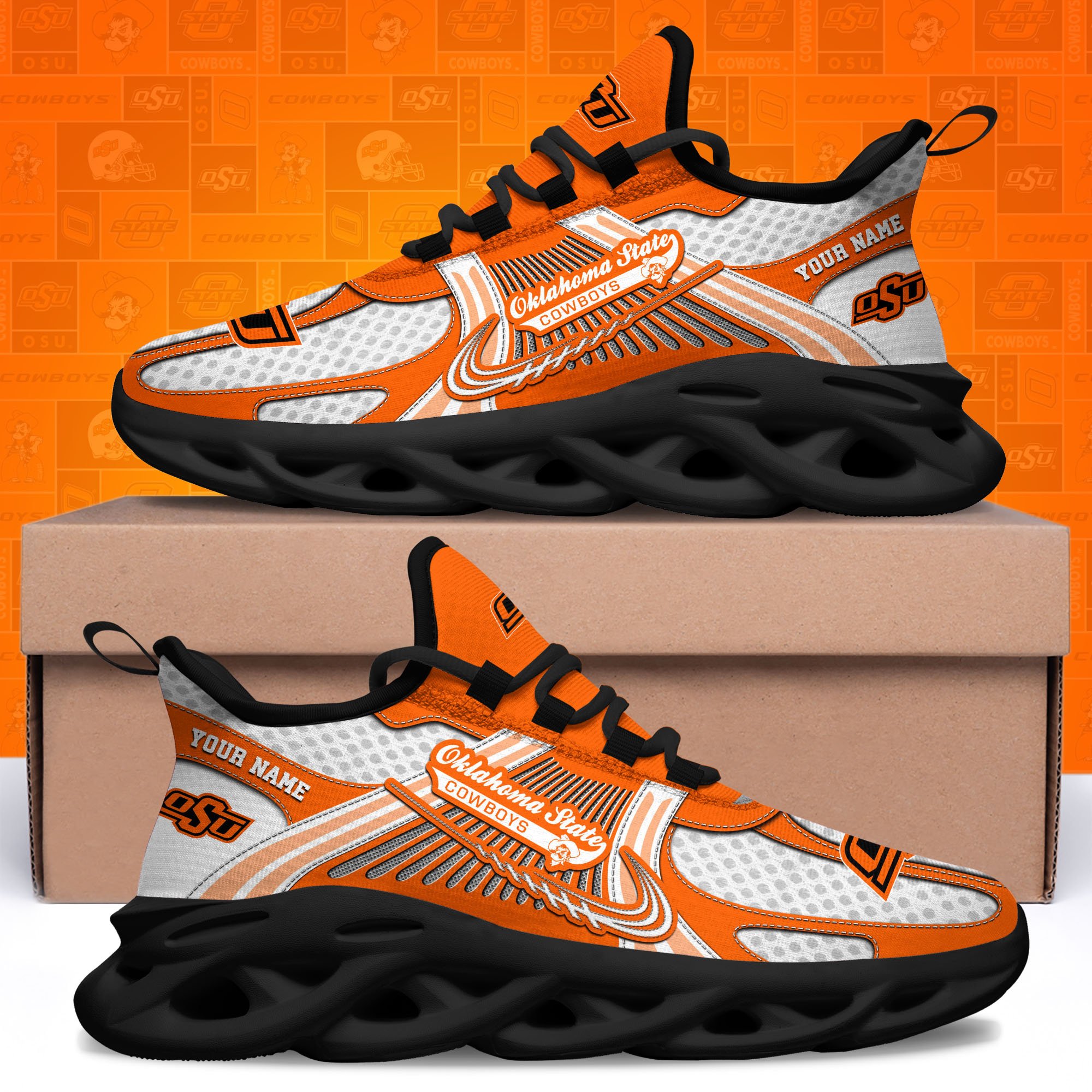 Oklahoma State Cowboys Clunky Sneakers Custom Your Name, Sport Sneakers, Sport Gifts For Fan, Gifts For Him