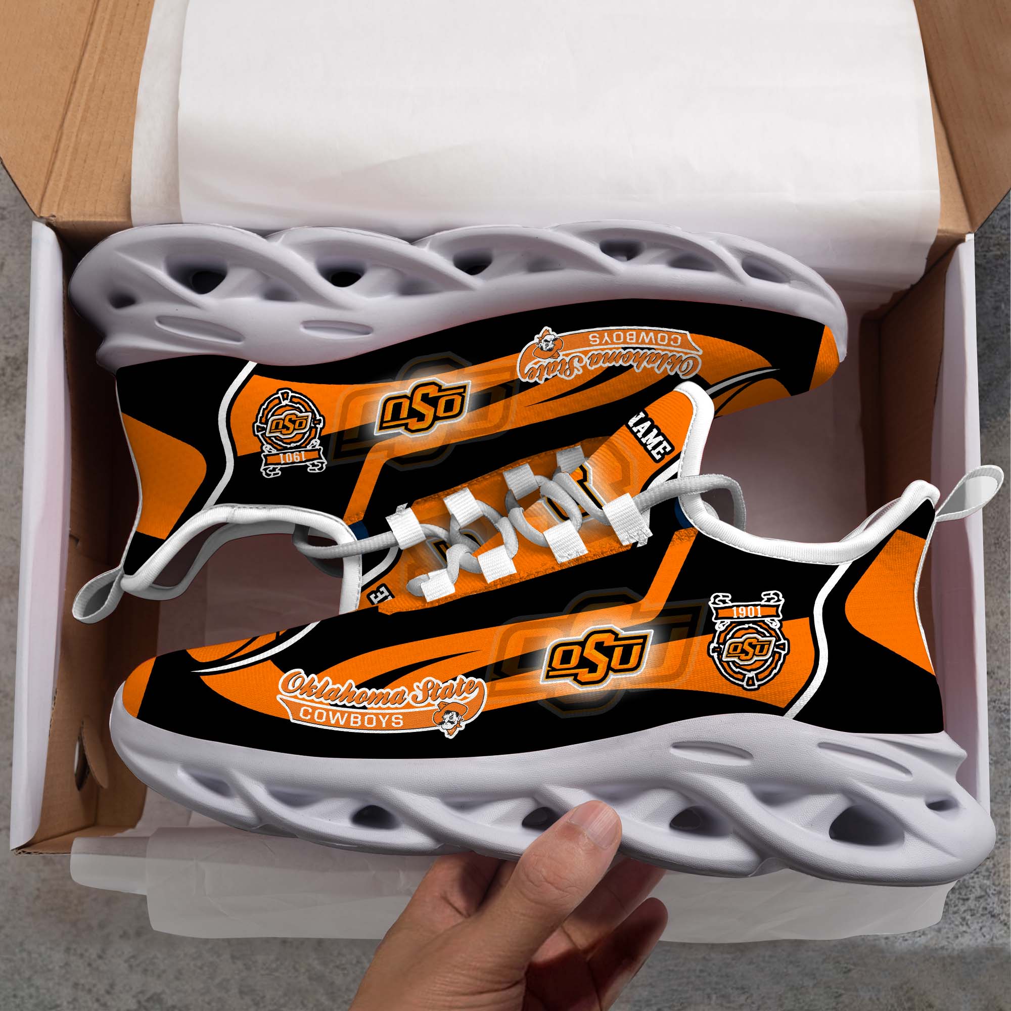 Oklahoma State Cowboys White C Sneakers 2026 Version Personalized Your Name 090
