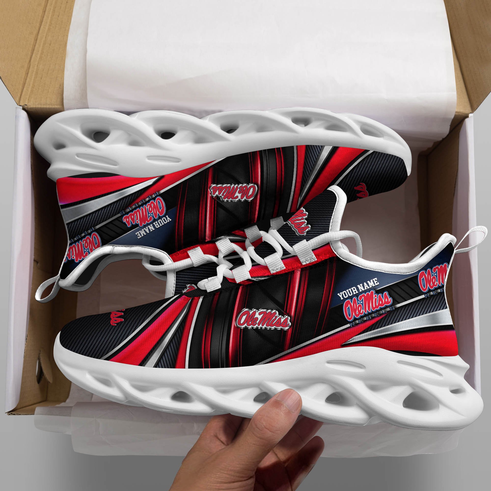 Ole Miss Rebels White C Sneakers 2026 Version Personalized Your Name, Sport Team Sneakers, Sport Gifts PH892