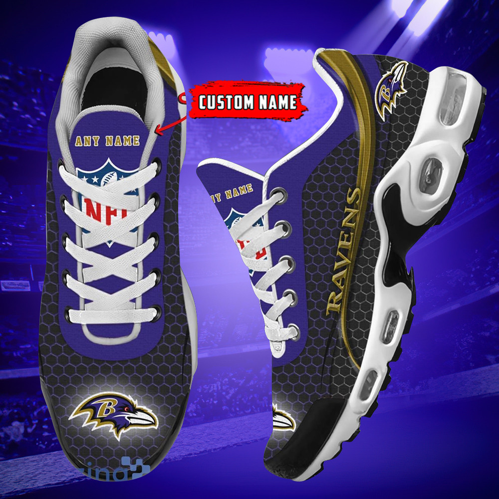 Personalized Baltimore RavensTeam Logo Hexagon Pattern Team Color TN Air Max Shoes Air Cushion Sneakers