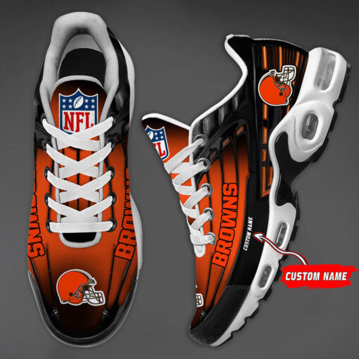 Personalized Cleveland BrownsBlack And Team Color Stripes Black TN Air Max Shoes Air Cushion Sneakers