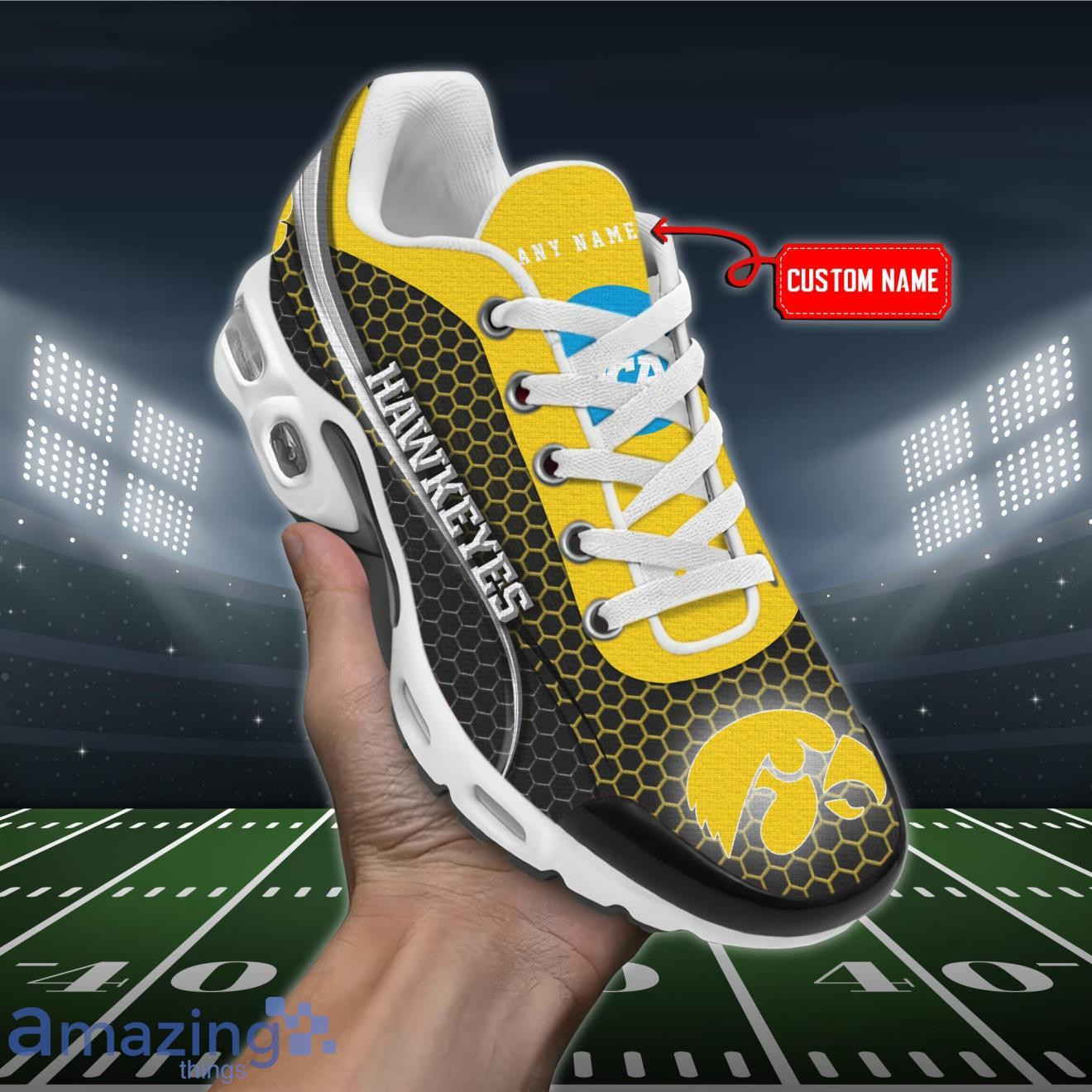 Personalized Iowa Hawkeyes Team Logo Hexagon Pattern Team Color TN Air Max Shoes Air Cushion Sneakers
