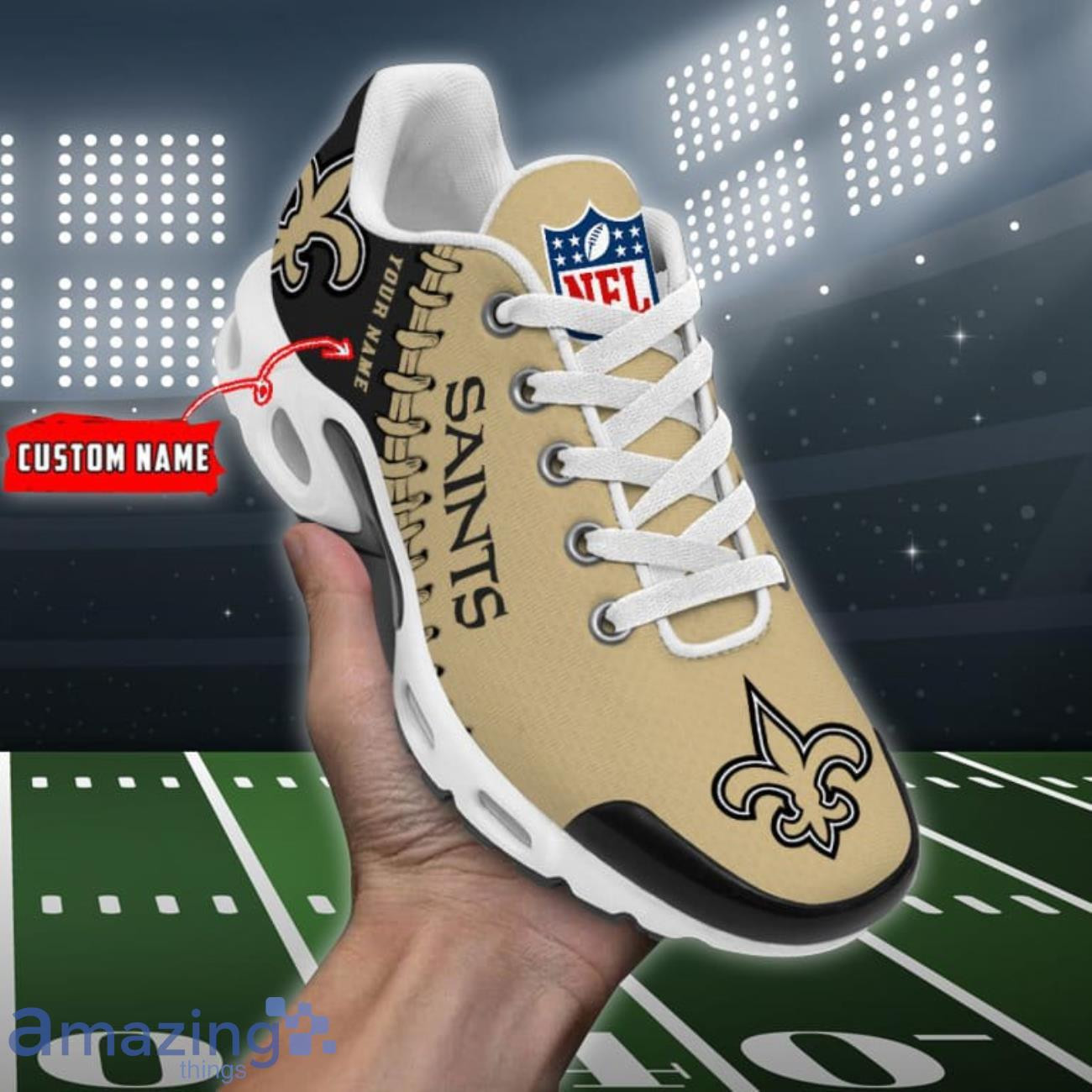 Personalized New Orleans Saints Team Logo Rugby Ball Pattern TN Air Max Shoes Air Cushion Sneakers