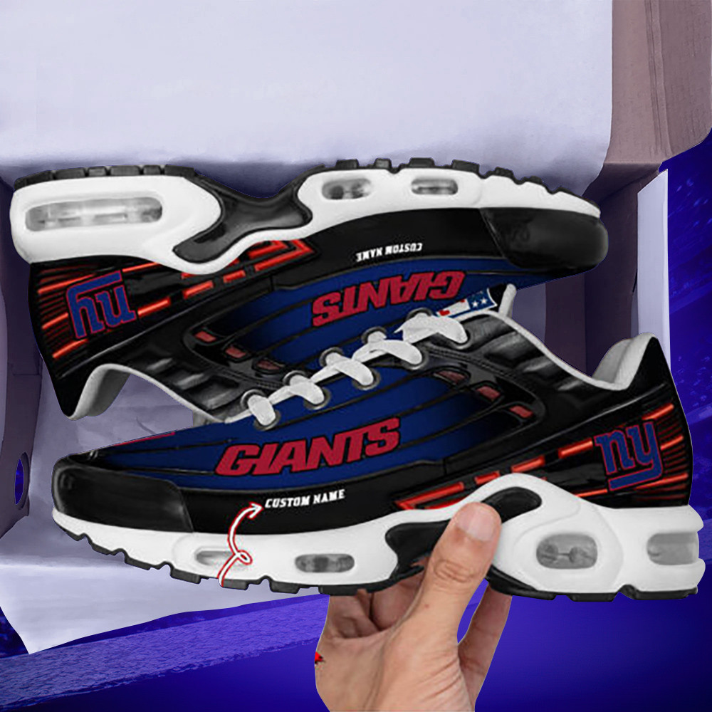 Personalized New York GiantsBlack And Team Color Stripes Black TN Air Max Shoes Air Cushion Sneakers