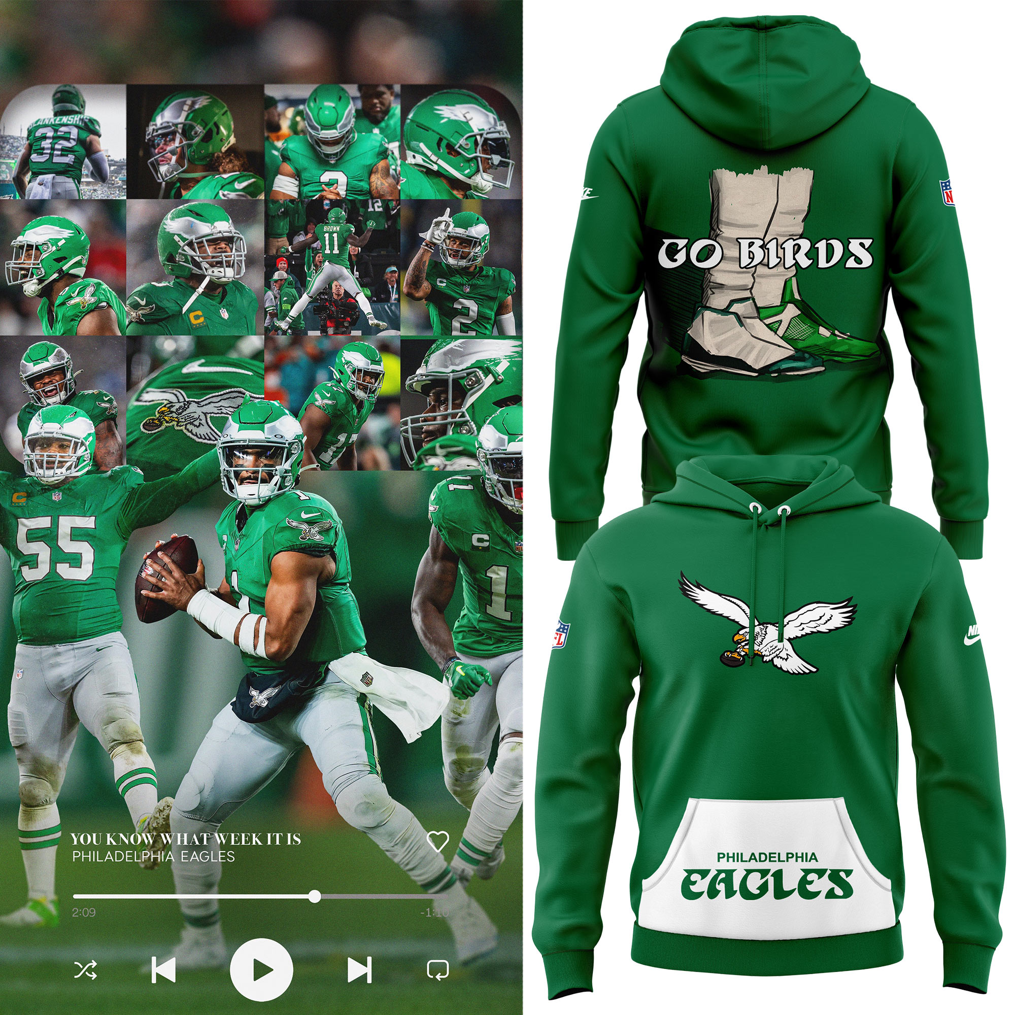 Philadelphia Eagles Two Shoes Throwback Hoodie 2024