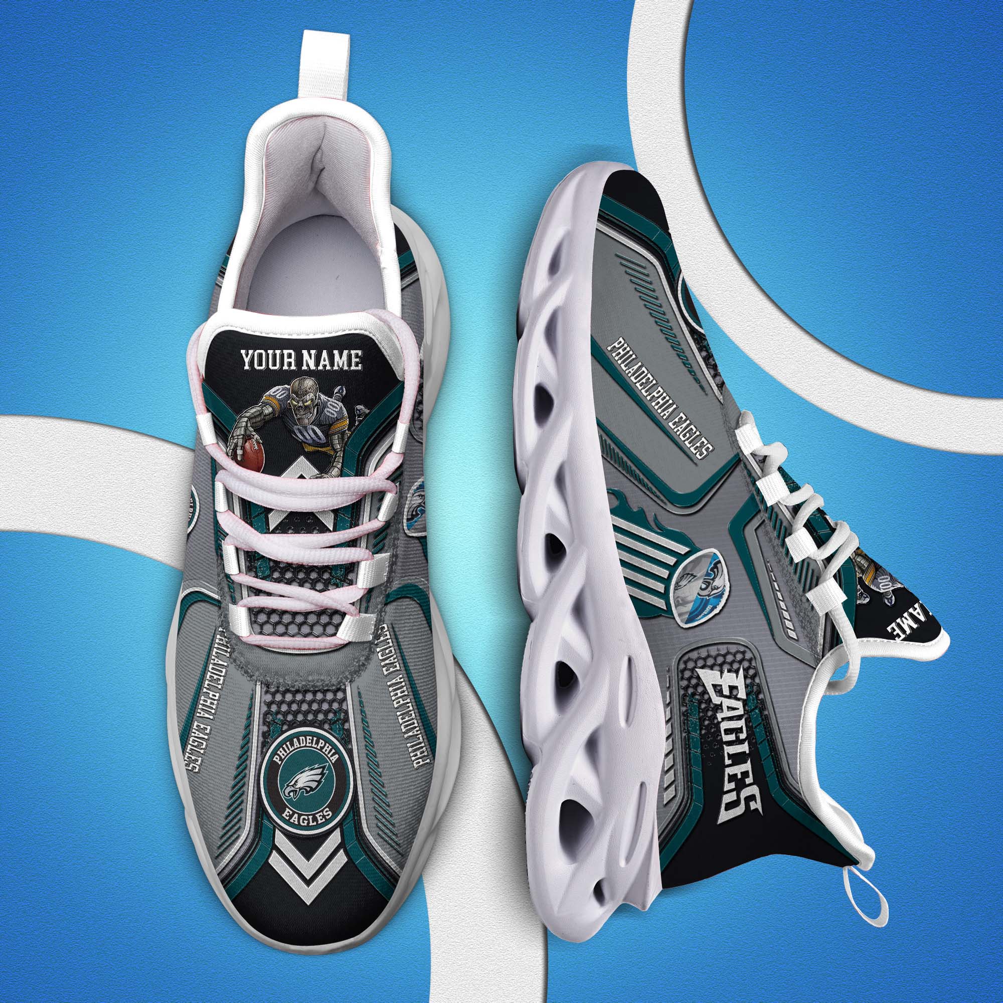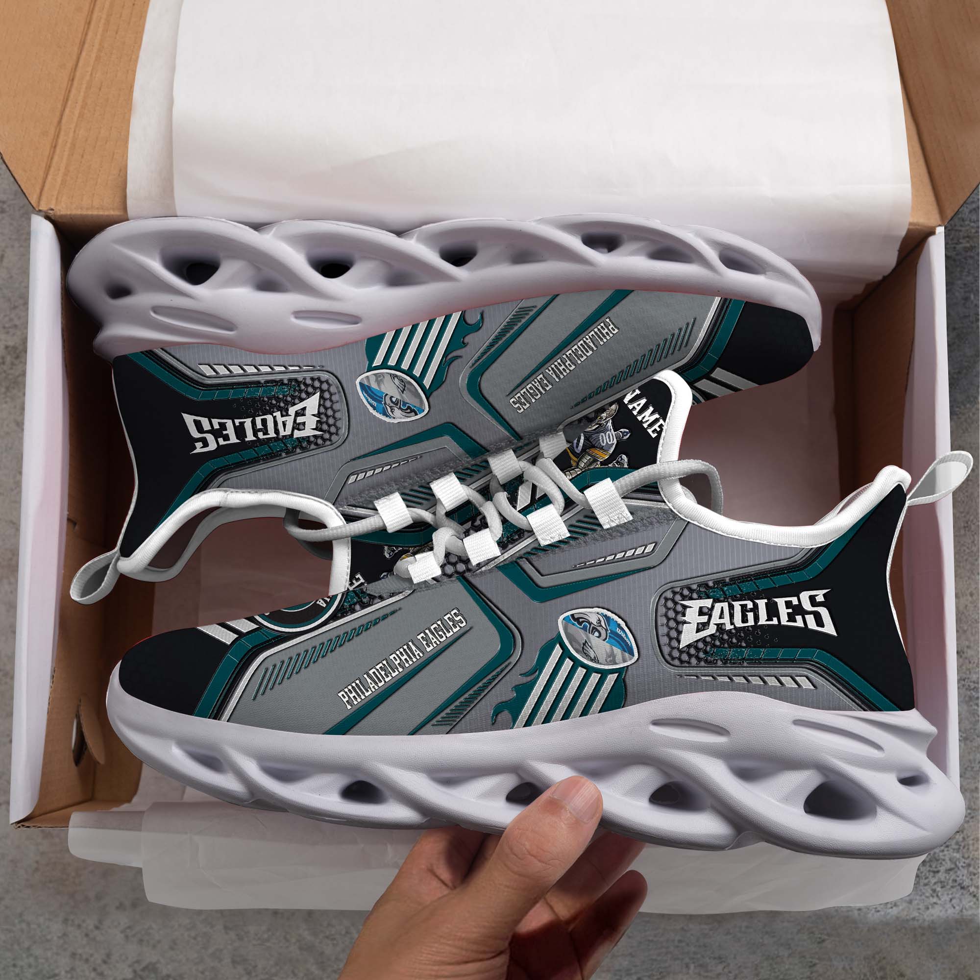 Philadelphia Eagles White C Sneakers 2026 Version Personalized Your Name, Sport Sneakers , Sport Gifts PH605