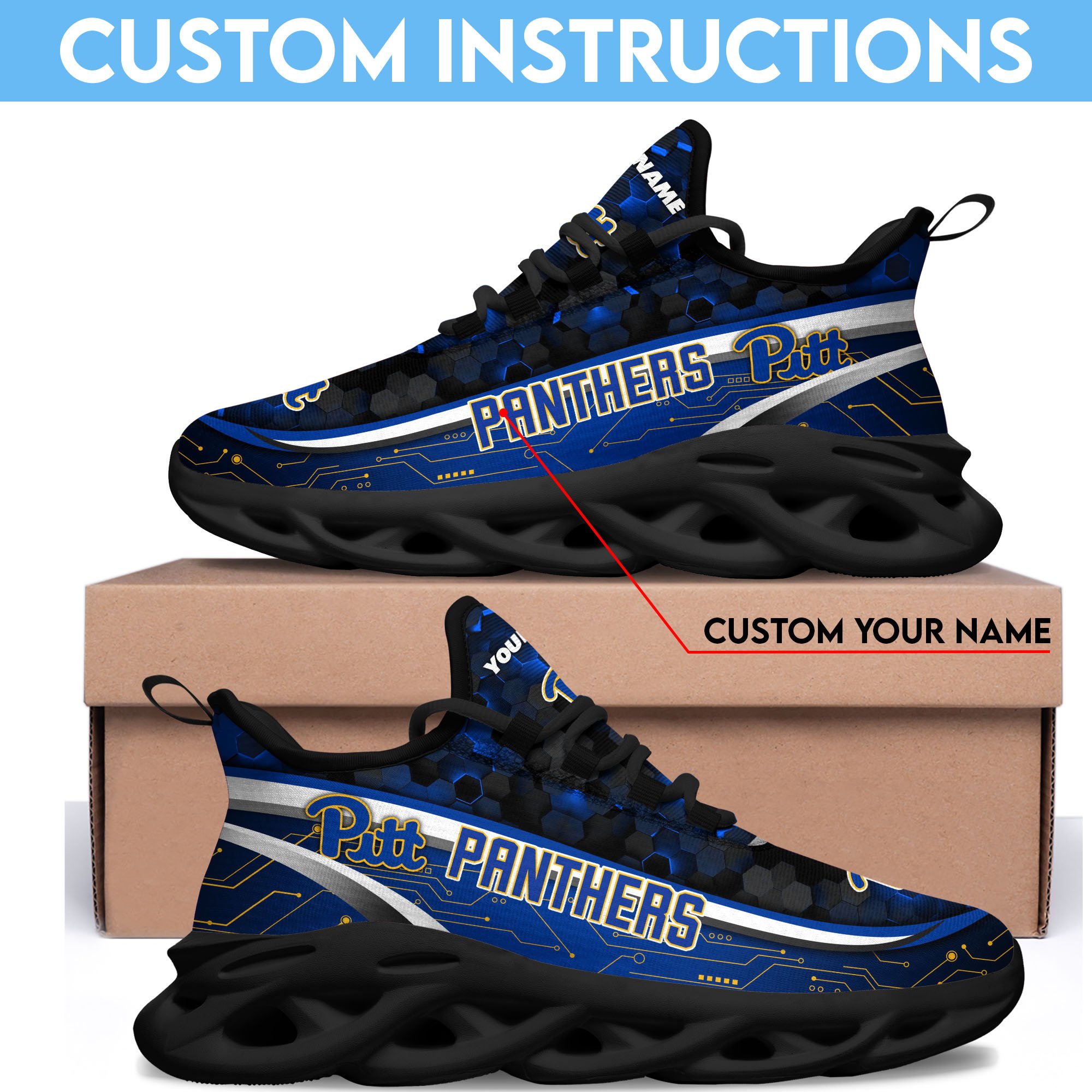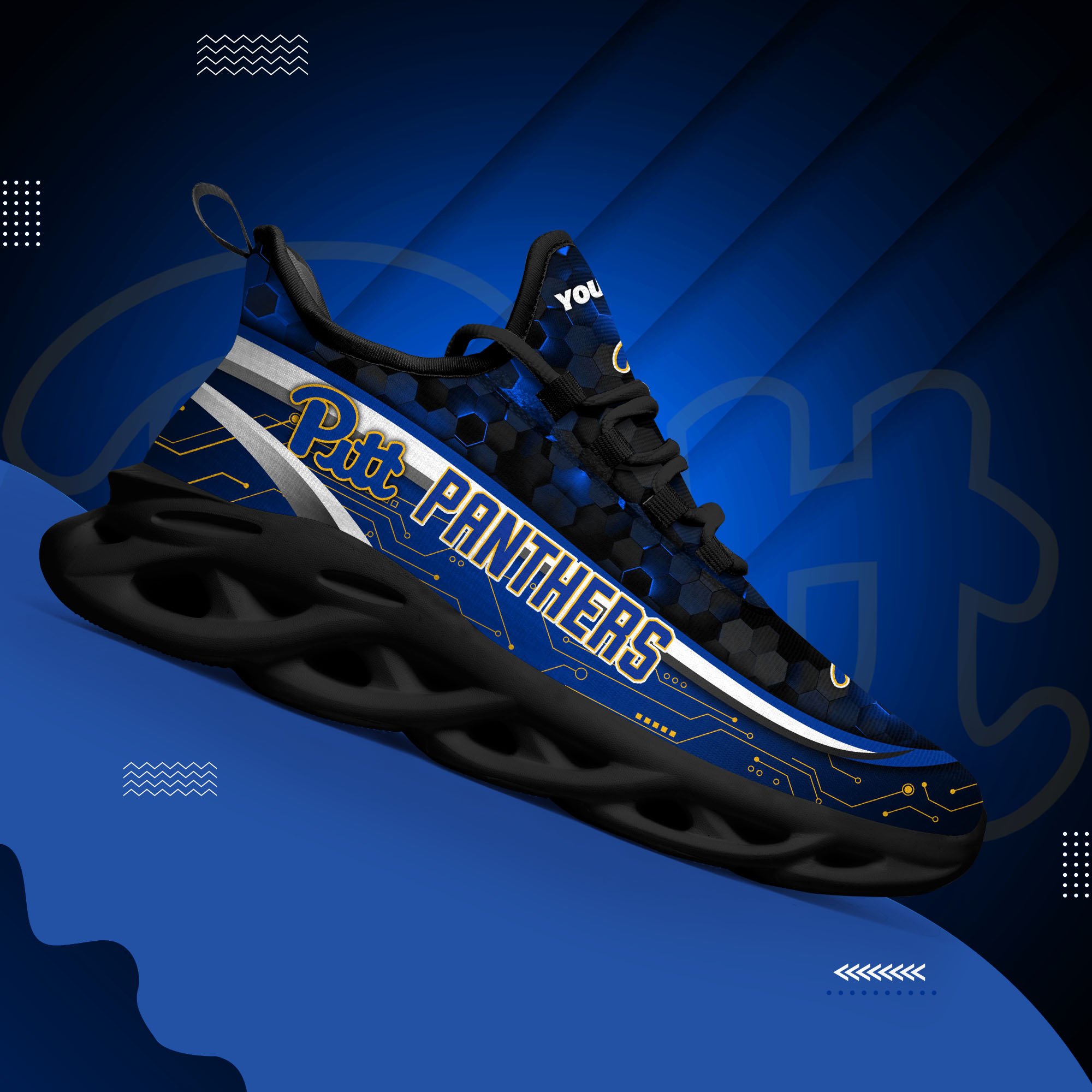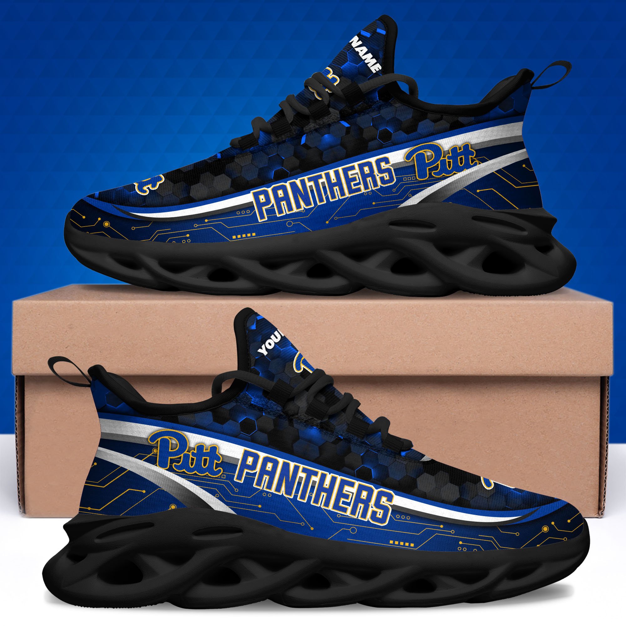 Pittsburgh Panthers Black Clunky Sneakers Custom Name, Max Soul Shoes, Sport Gifts