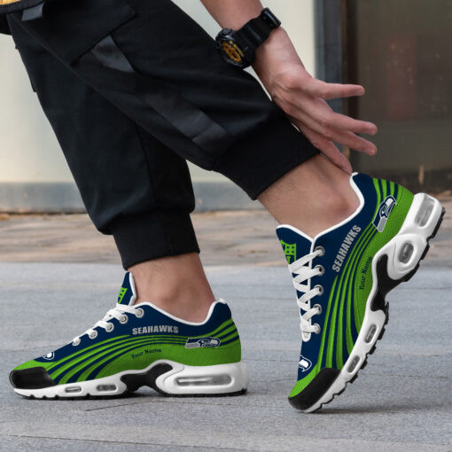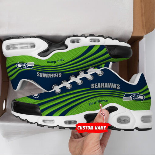 Seattle Seahawks Personalized Name Team Colors Wave Lines TN Air Max Shoes Air Cushion Sneakers