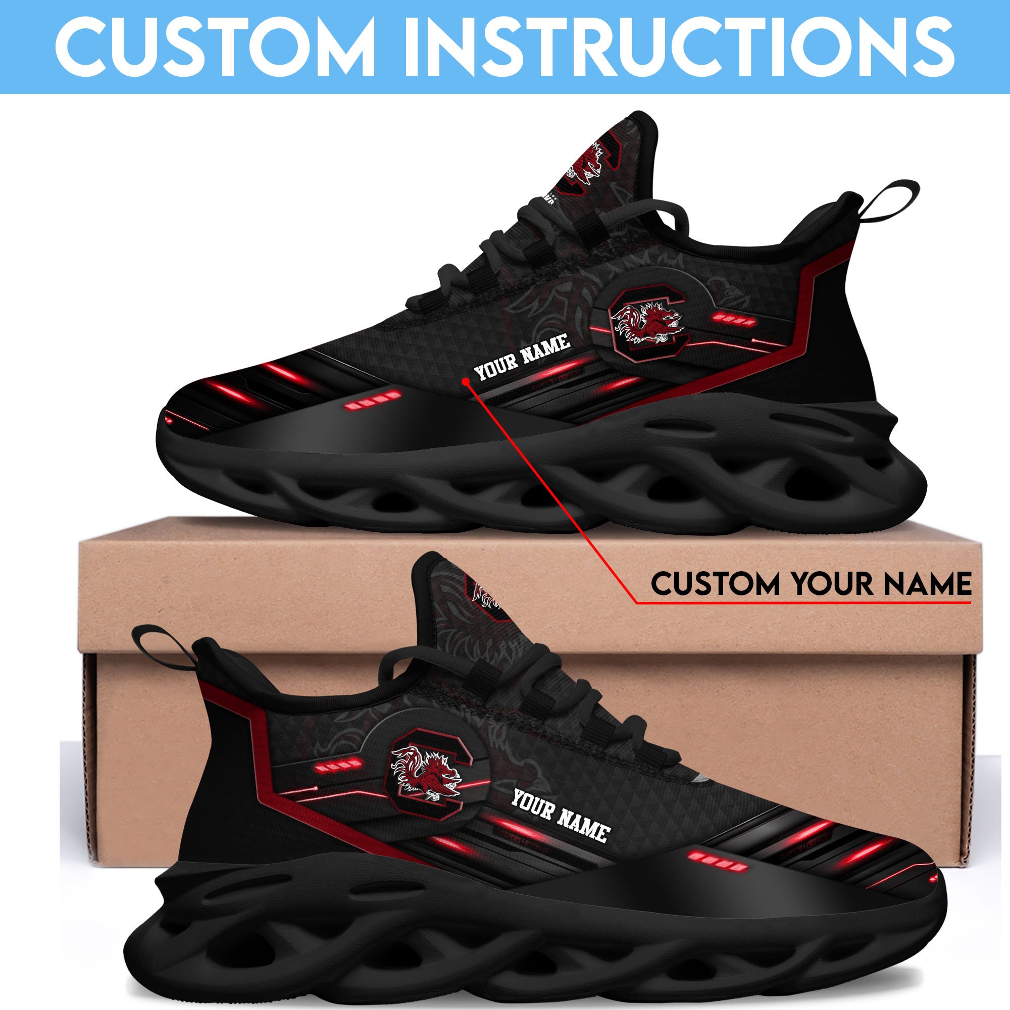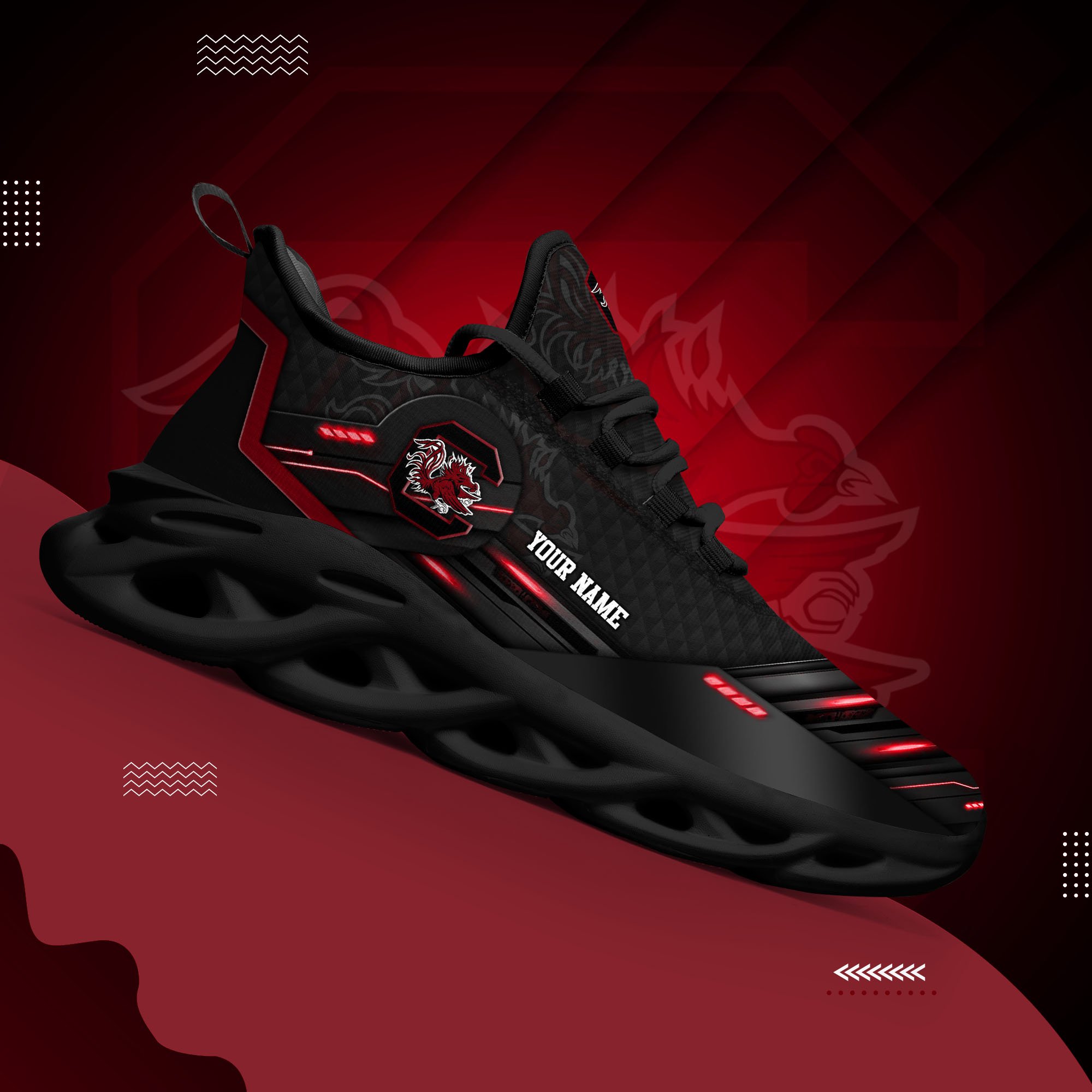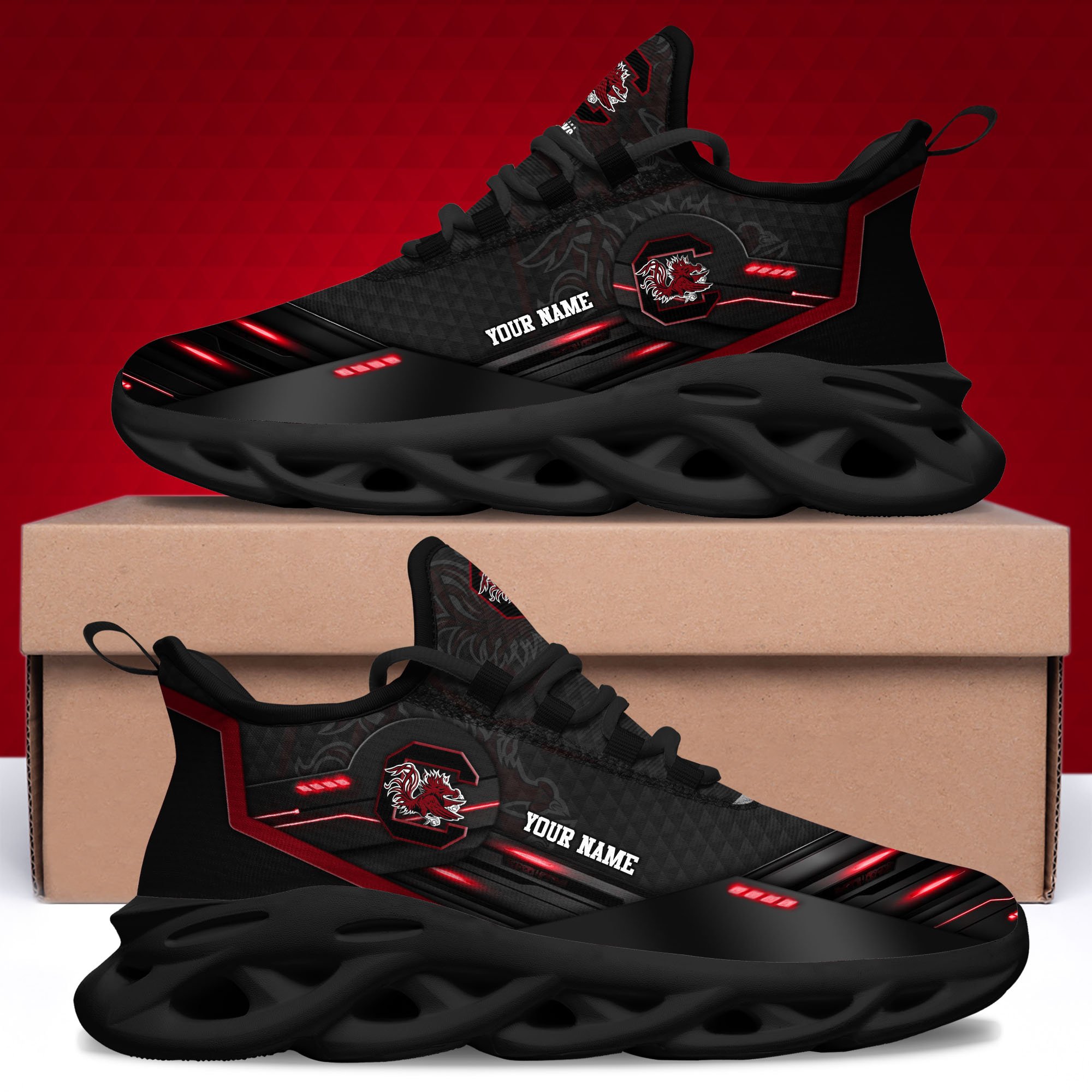 South Carolina Gamecocks Black Clunky Sneaker Custom Name, Max Soul Shoes, Sport Gifts For Fan