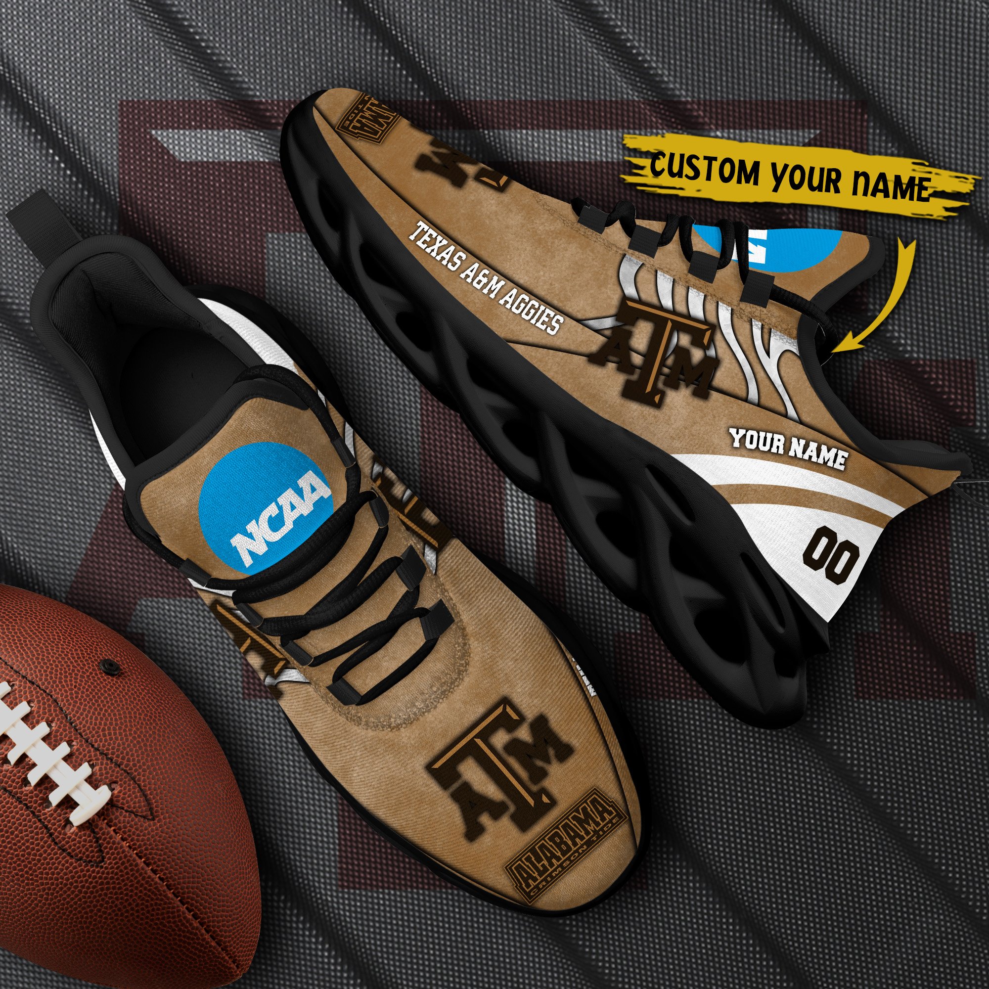 Texas A#038M Aggies Black Max Soul Shoes 2026 Versions Custom Your Name And Number 312