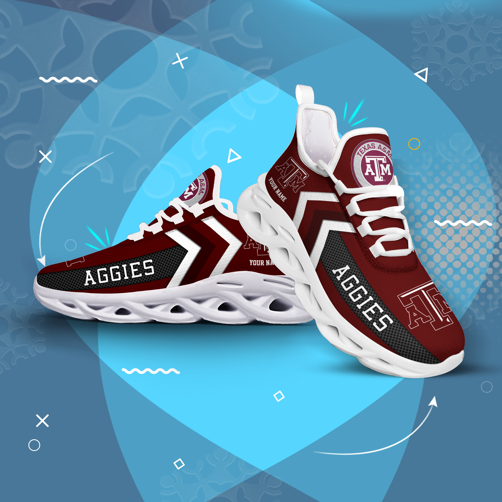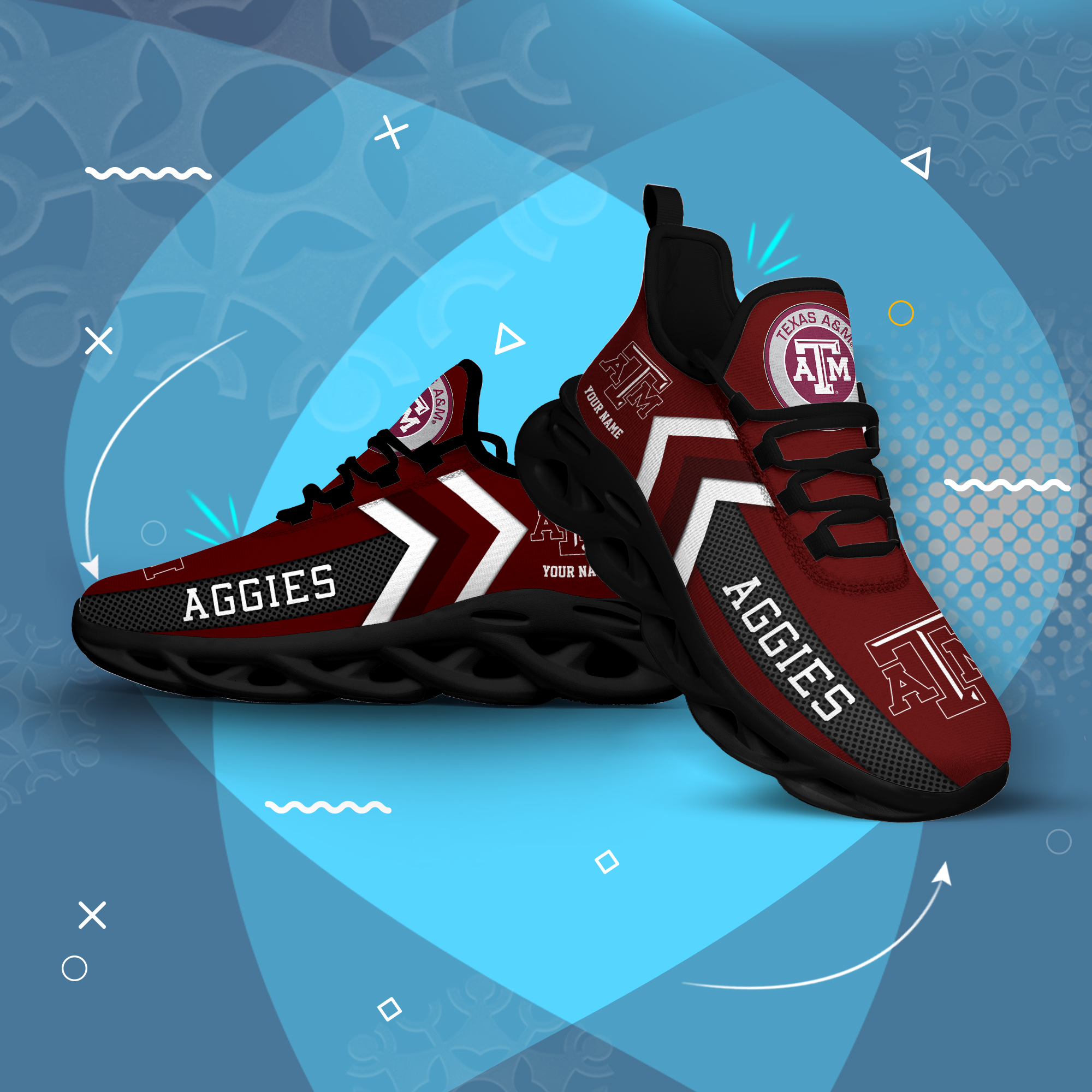 Texas AM Aggies Personalized Custom Name Max Soul Shoes DS003