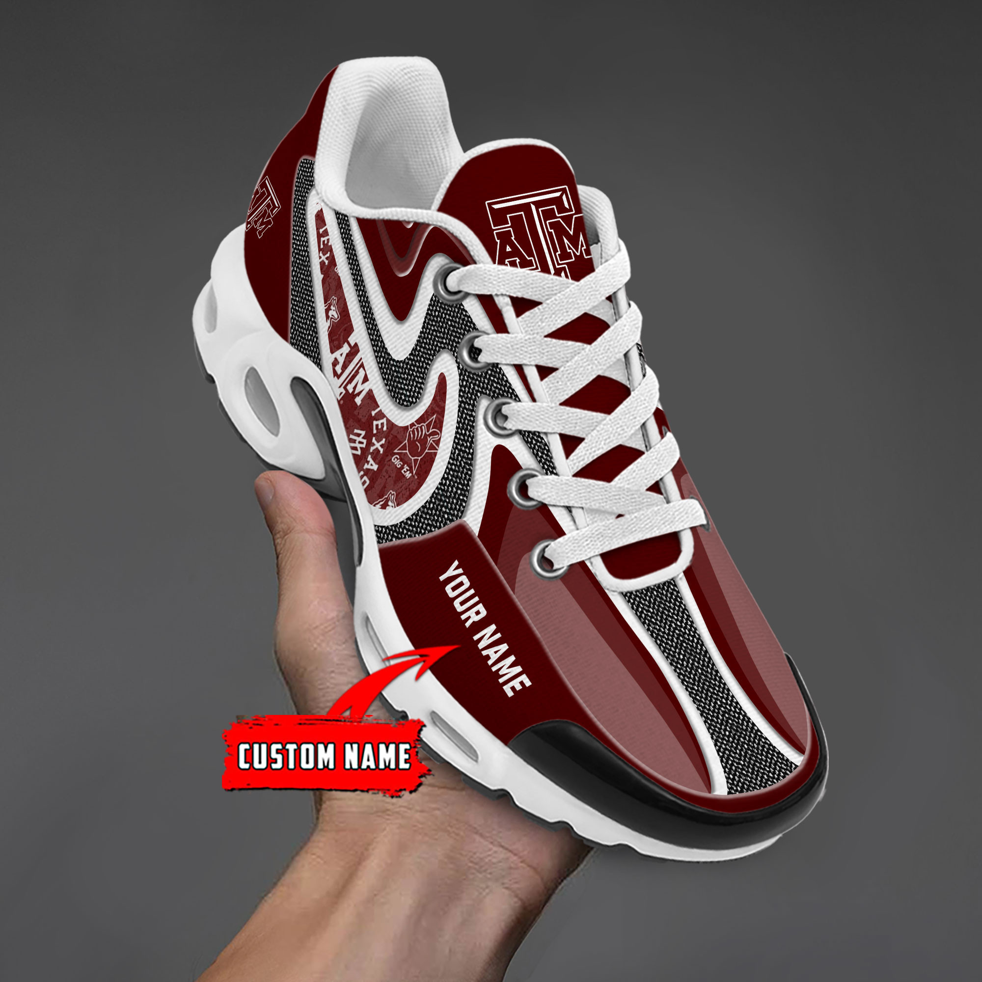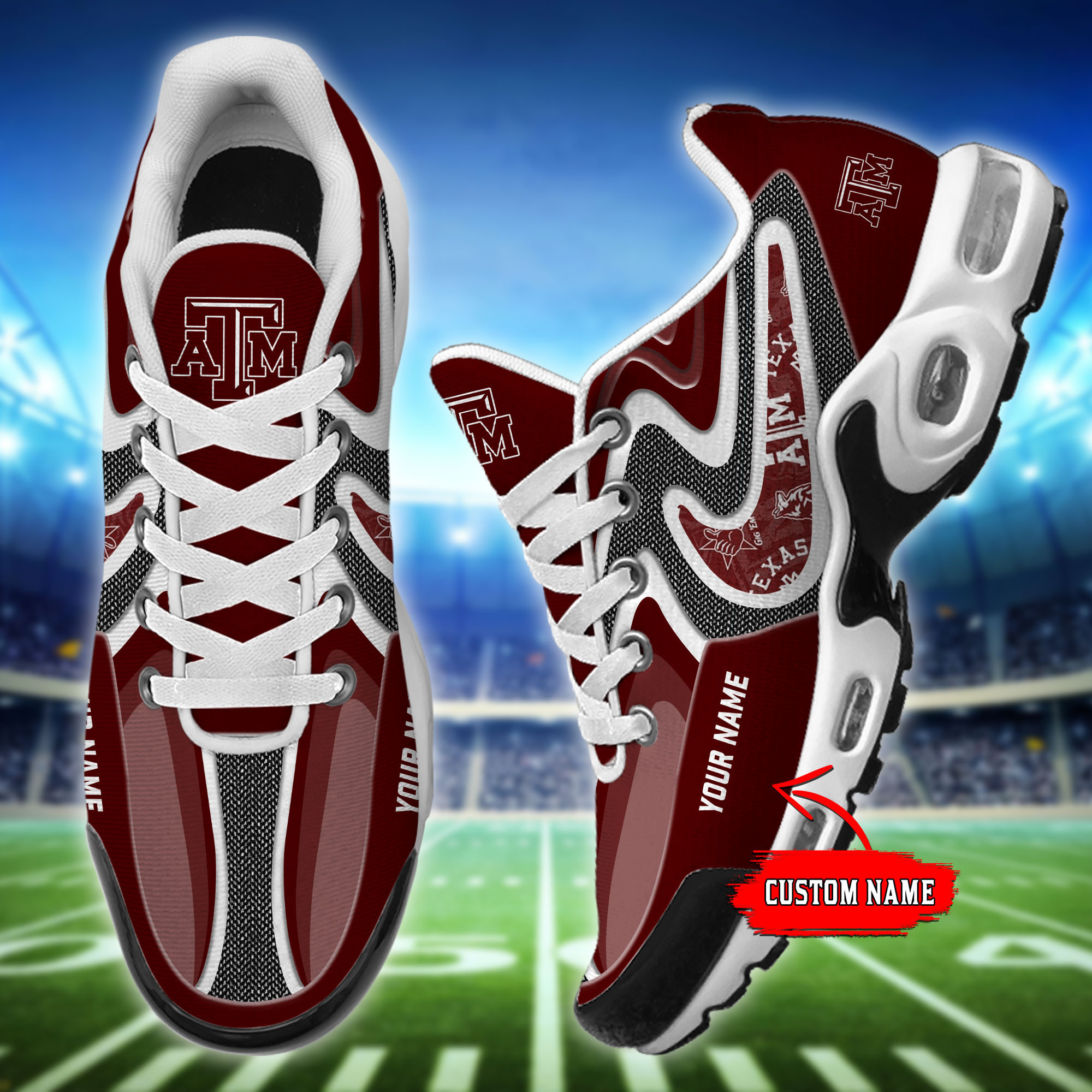 Texas A&M Aggies Personalized Name Team Checkmark Logo Mix Colors Stitch Line TN Shoes Air Cushion Sneakers