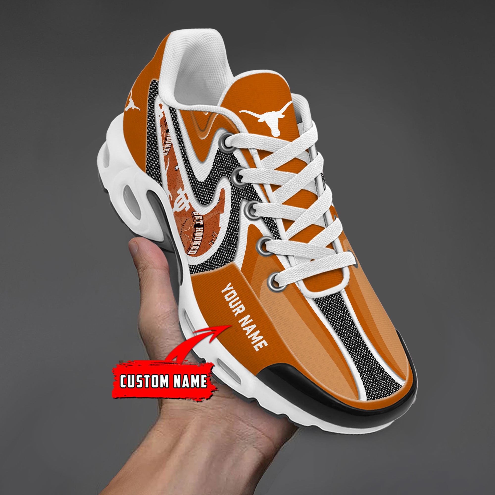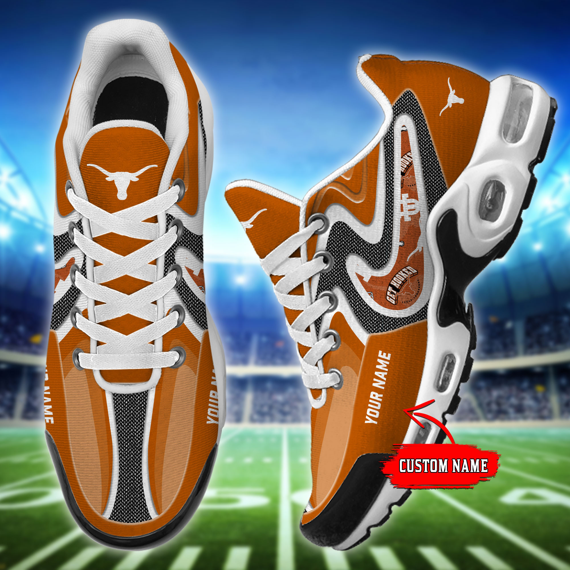Texas Longhorns Personalized Name Team Checkmark Logo Mix Colors Stitch Line TN Shoes Air Cushion Sneakers