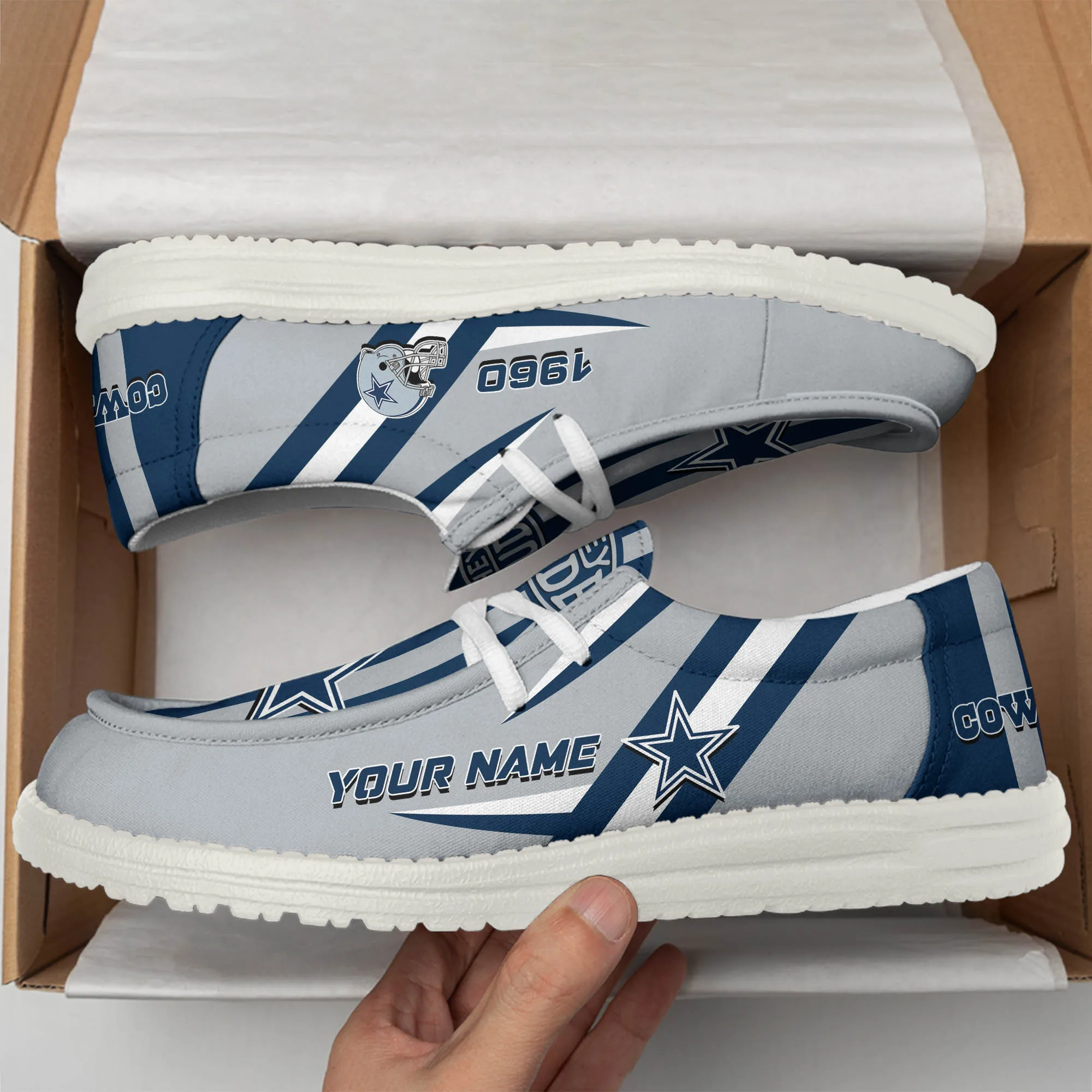 Weiße Canvas-Loafer-Schuhe des Dallas Cowboys-Teams personalisieren Ihren Namen