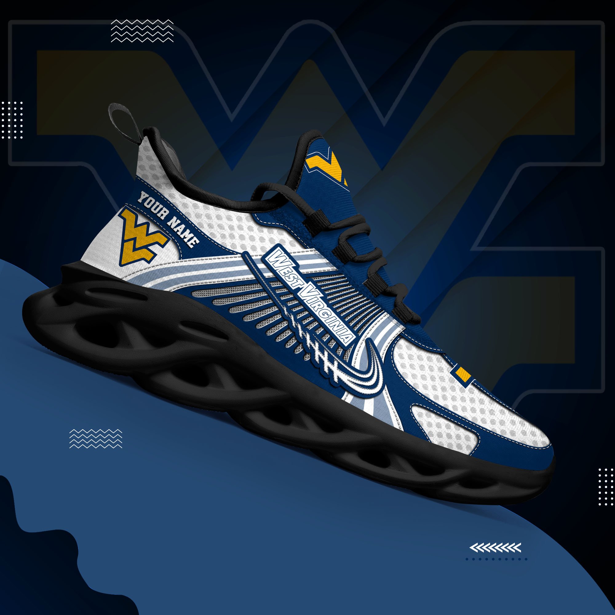 West Virginia Mountaineers Clunky Sneakers Custom Your Name, Sport Sneakers, Sport Gifts For Fan, Gifts For Him