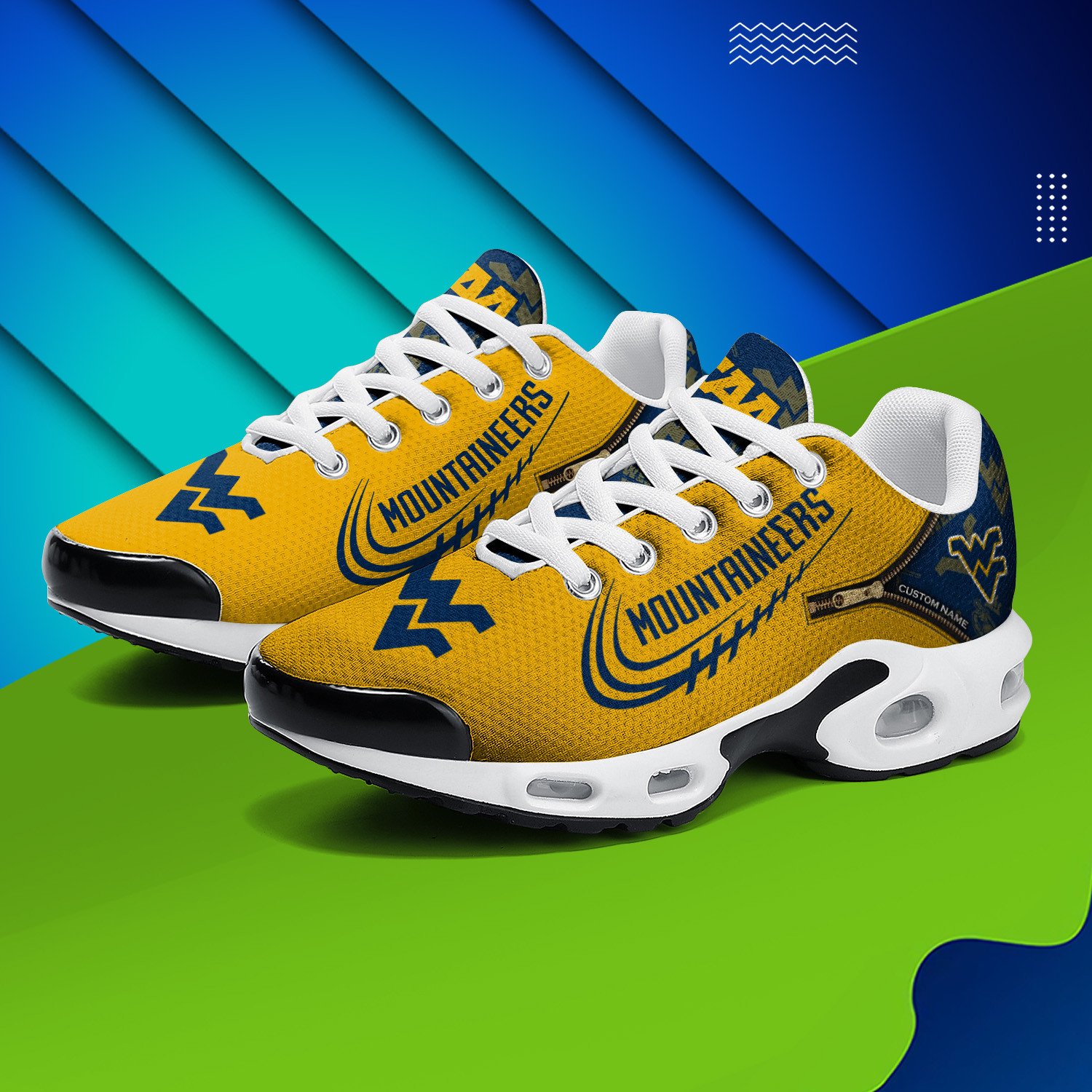 West Virginia Mountaineers Personalized Name Team Logo Mix Colors Zipped Line TN Air Max Shoes Air Cushion Sneakers