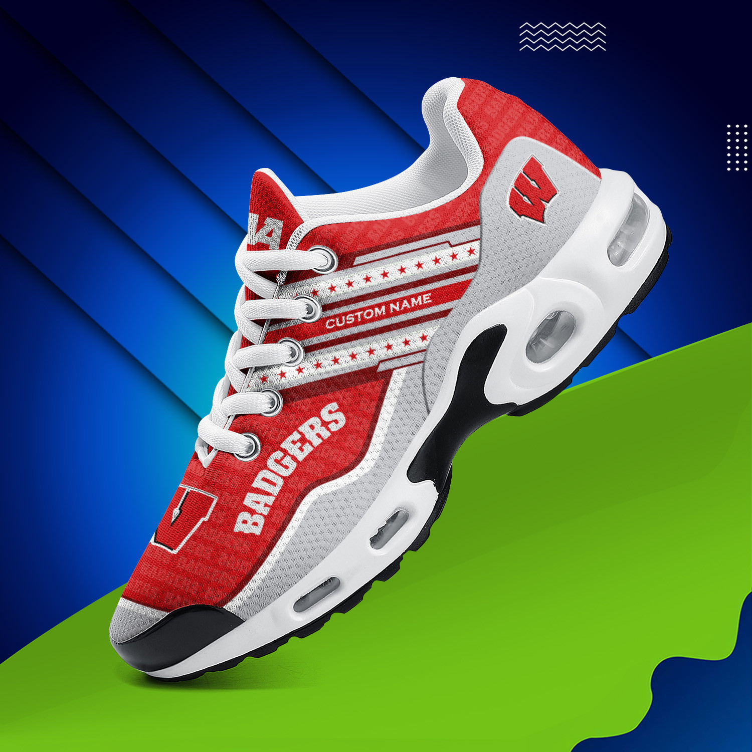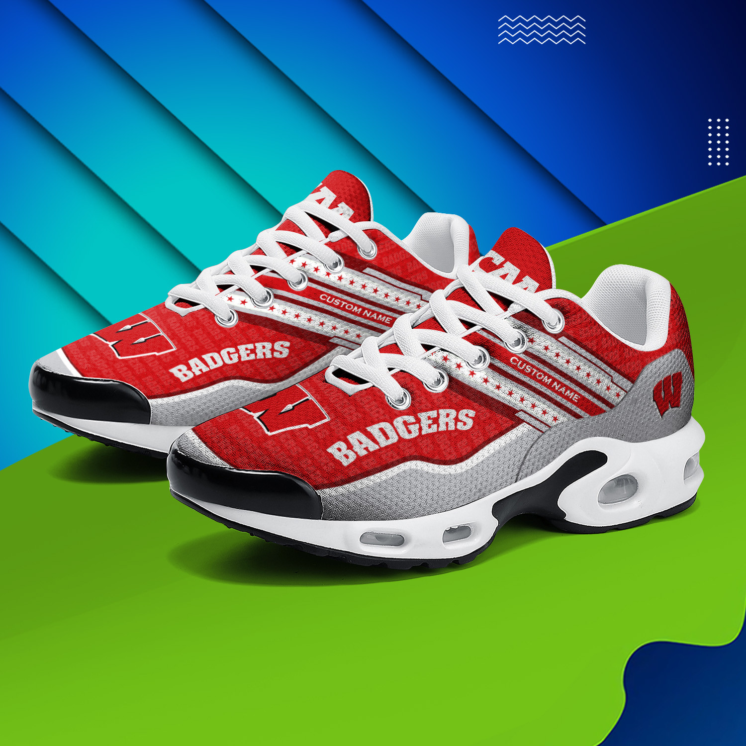 Wisconsin Badgers Personalized Name Team Logo Mix Colors Star Line TN Air Max Shoes Air Cushion Sneakers