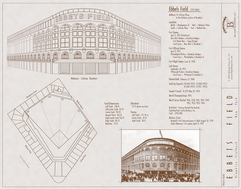 Brooklyn Dodgers Ebbets Field Baseball Stadium Blueprint Poster Print – Ballpark Blueprints Inc.
