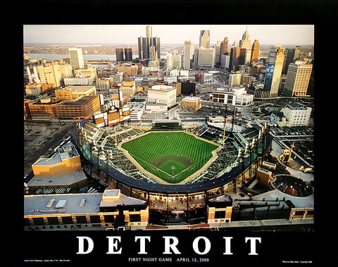 Comerica Park First Night Game Detroit Tigers Premium Poster Print – Aerial Views