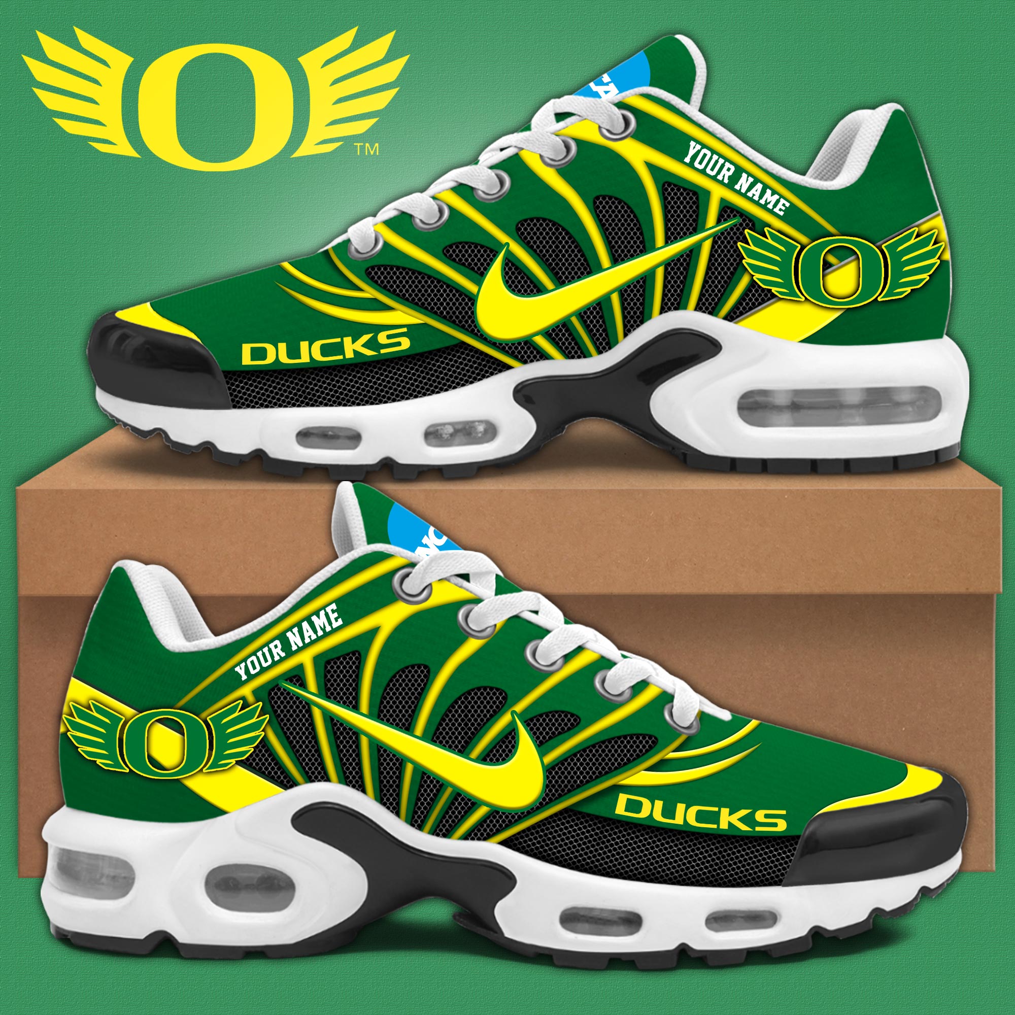 Oregon Personalized Name Team Colors Wave Line Beehive Pattern TN Air Max Shoes Air Cushion Sneakers