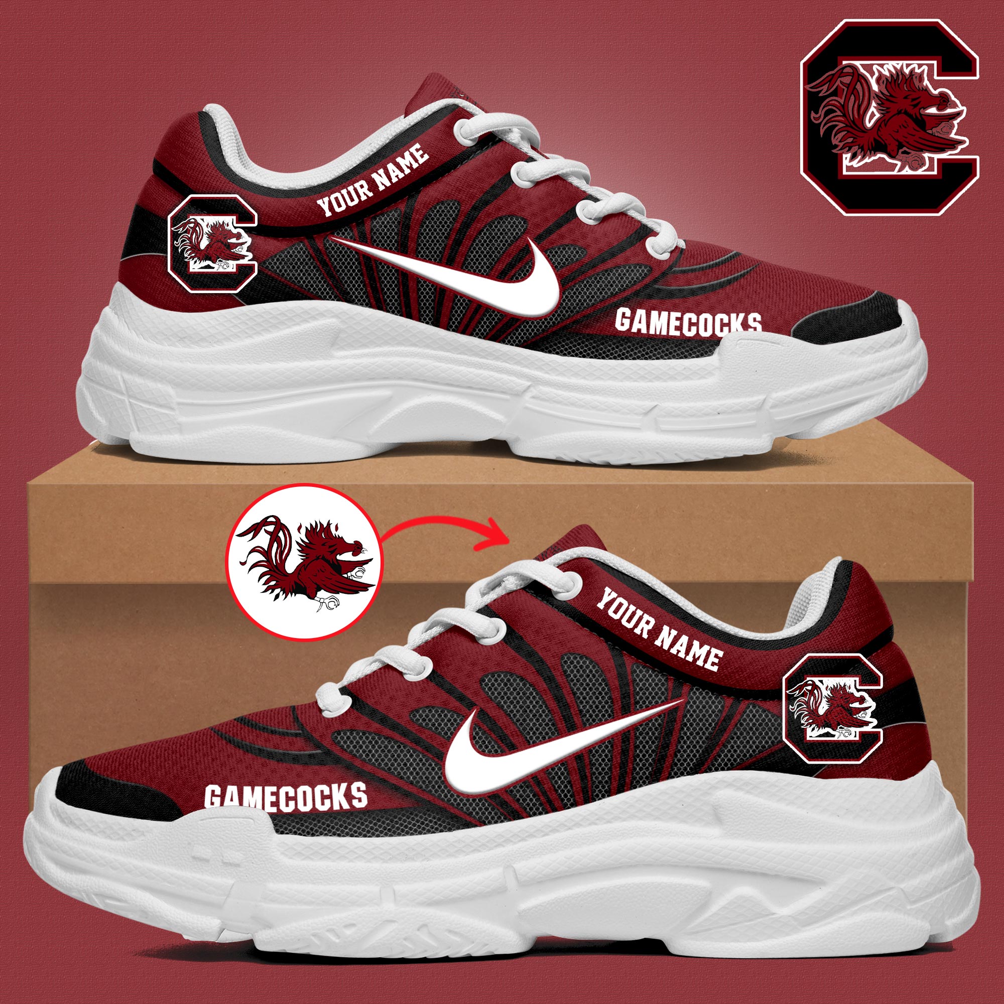 South Carolina Gamecocks Clunky Sneakers Custom Your Name, Sport Sneakers, Sport Gifts For Fan, Gifts For Him